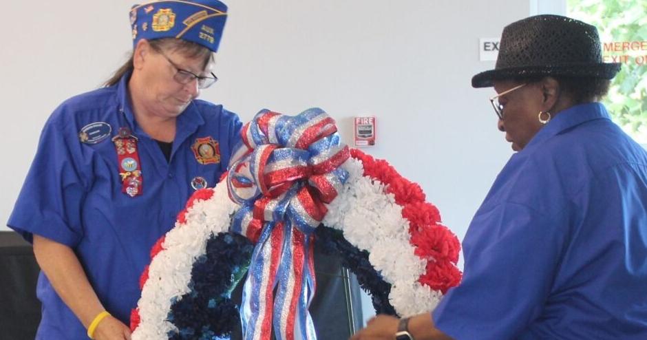 Barbara Shuler and Janie Sims place a wreath during the Orangeburg County Veterans Council’s annual Memorial Day observance on Sunday, May 26.…