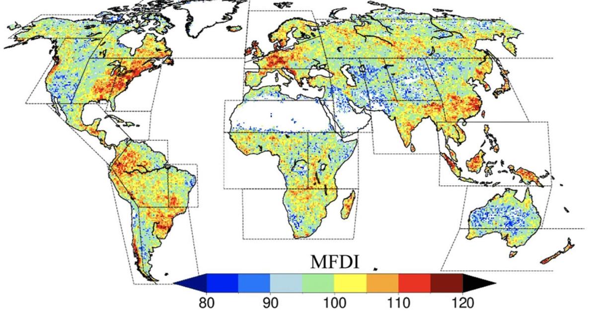 The result was the Multivariate Flash Drought Indicator, or MFDI, which boils down the potential impact of flash drought to a single number for each location.