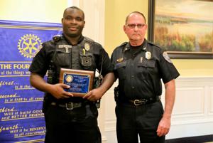 SCHP Capt. Nicklous W. King of Troop 7 presented Trooper Alante T. Snell with his Service Above Self award. He said Snell exemplified the same values as those of Rotary members.